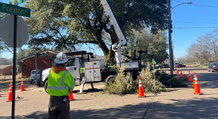 The rise in temperatures was welcomed as crews continued their efforts since pre-dawn to clear trees and, wherever possible, repower customers. Nearly 1,000 personnel, including resources from SWEPCO’s sister utilities at Public Service Company of Oklahoma (PSO) and AEP Texas along with contracted tree crews from the area and as far away as North Carolina and South Carolina answered the call to offer extra assistance.